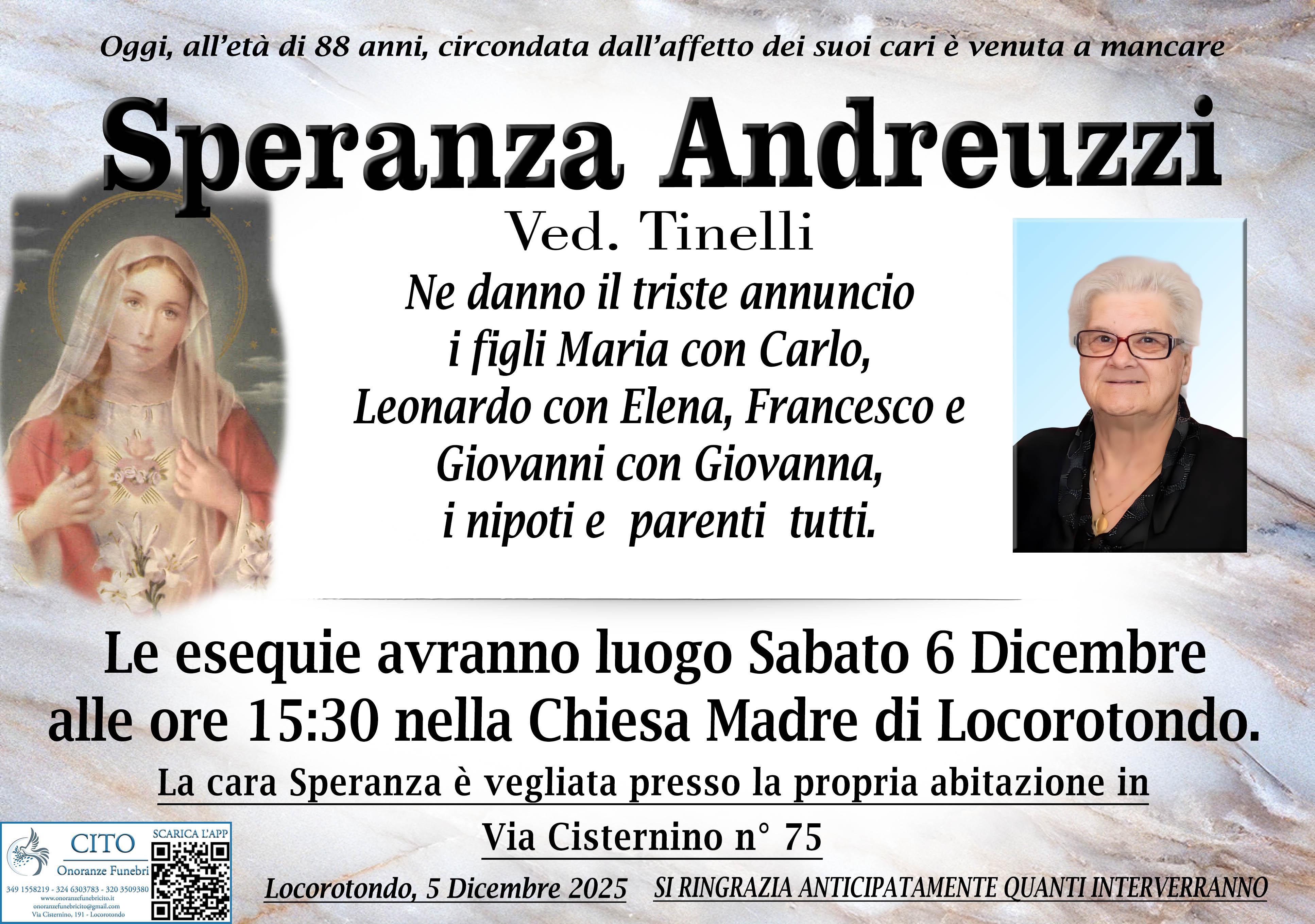 Ci ha lasciati nel dolore la cara Speranza. Le esequie saranno celebrate Sabato 6 alle ore 15:30 nella Chiesa Madre di Locorotondo.